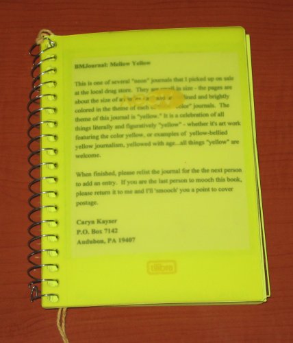 This is one of several “neon” journals that I picked up on sale at the local drug store. They are small in size – the pages are about the size of an index card and are unlined and brightly colored in the theme of each of these “color” journals. The theme of this journal is “yellow.” It is a celebration of all things literally and figuratively “yellow” – whether it’s art work featuring the color yellow, or examples of yellow-bellied yellow journalism, yellowed with age…all things “yellow” are welcome.