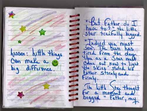 This is a fun journal that everyone gets to make up their own fables. Did the Princess really sleep on a pea? Perhaps the Brother’s Grimm got their facts mixed up? Did the tortoise REALLY go slower than the hare? This is your time to shine, and make up your own twisted fable. When this journal is full, please send it back to Debbie Hoggan Bookmooch ID: hogganclan.
