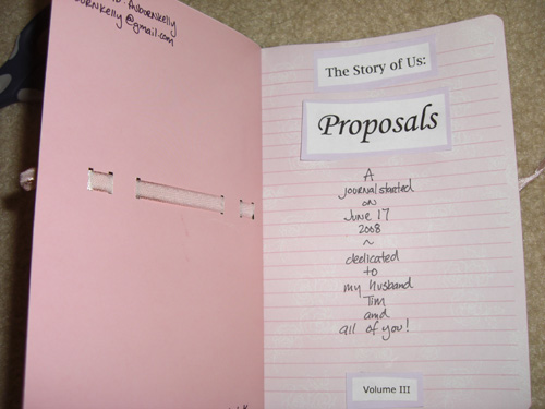 This is the third journal in a trilogy I am making. Journal about the time when you or your special someone popped the big question. Where were you? What were you wearing? Can you remember the day? Tell us the fun (or maybe not so fun) details. This book is for any couple married, engaged, young, old, etc. Please care for this journal as if it were your own. Pass it along the way after you have finished and try to finish within the 2 week period (standard journaling).