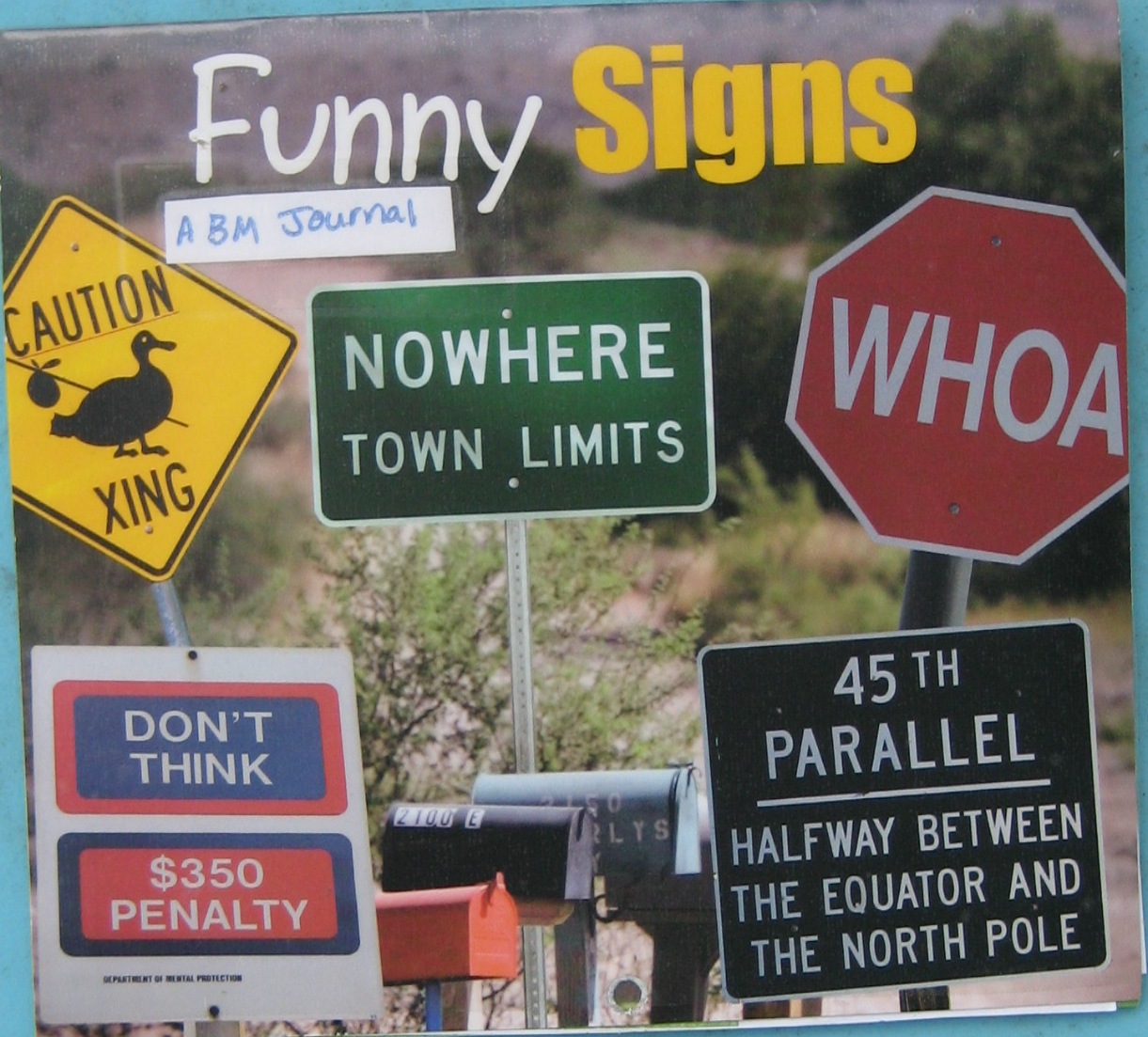 Do you know a sign that makes you laugh or makes you go “huh”? Or perhaps you’ve seen one on the internet that you would like to include. This little journal is a calendar of Funny Signs. You can make any entries on the date side of the calendar, either directly or cover the page with a peice of paper. Please leave the picture side of the calendar as is.