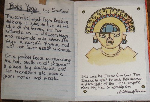 The theme of the book is Pagan Gods and Goddesses, therefore, please choose a God or Goddess (Such as Artemis, Pan, Briget etc.) per page or two and decorate the page about this God/Goddess, write invocations, write how they speak to you and decorate the page any you can, once it relates to the deity chosen.Please choose real Gods/Goddesses, not one you make up yourself, please write about them in a way that honours them, please do not write anything derogatory as to insult the Pagan lifestyle and do not destroy or write on other peoples entries. Use any medium to decorate.
