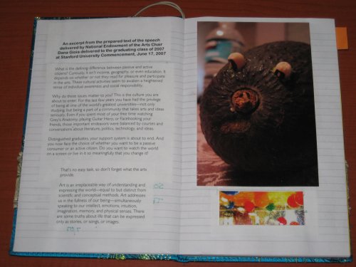 This is an Altered Book from The BookMooch Journal Project. The book is a 1989 hardback copy of All I Really Need to Know I Learned in Kindergarten by Robert Fulghum. This book wants to travel the world and collect life lessons and advice from today’s readers and artists. Feel free to be creative. Use photos, ATCs, ACEOs, multimedia art, paintings, drawings, doodles, stickers, stamps, found objects, and anything else that comes to mind. Text is okay, too! Share your uncommon thoughts on common things, mantras, words to live by, and anything else you think is worthy of sharing. Works can be signed or unsigned.