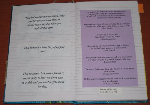 There IS one rule. After you are done adding your art, please put the journal back into this same page I’ve created for it here at BookMooch so someone else can mooch it and add to it, and when it is full, please contact me to arrange return of this treasure to me.