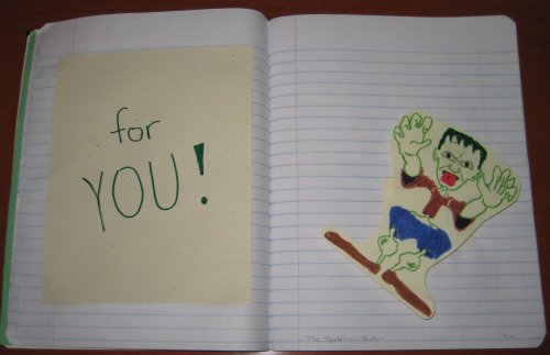 This is a passalong journal created by my 10 year old nephew Kaylan. My two nephews were over one day & saw the journals I was working on & they got excited about it and wanted to start their own. The topic of this journal is Most Scariest Moments, add your own scary moments or if you don’t have one, make up a scary story (he LOVES horror movies) feel free to add scary artwork or illistrate your story. Please no adult content since this is for a 10 year old but please help him fill up his book! Feel free to use as many pages as you would like and pass it around to your family and friends. When full please return to me, BookMooch ID: mspeegle.