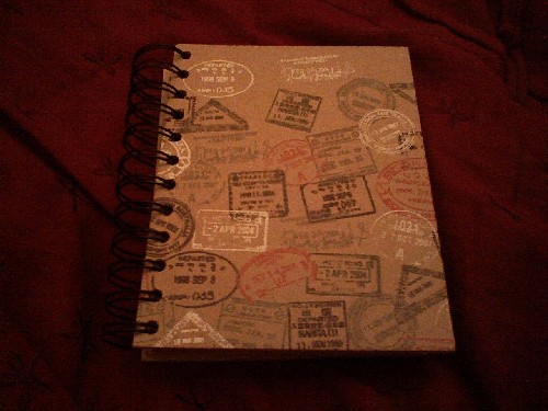 I’ve been a lot of places, but here is a trip I never took. This is a Frommer’s Travel Planner Journal. I bought it at Savers, to plan a trip to Washington DC for the summer of 2007. The trip was canceled. You can read about it and see my notes. I wrote all over the maps for this project, not as part of the trip planning, you can too, use a different ink pen/color than mine. The front pocket has some items, use them as you will. ADD something new. Place your business card in the back or alter a fake credit card, I did. Relabel the tabs, list the states and places you have been. Tell us about your USA or abroad travels. Tell about the trip you never took, or one you want to take. Add a postcard or take a postcard for any reason, any state. Cut up a map and paste. Have fun. Dont alter others work. The front maps and cover are the free zone. Please add a yarn, ribbon or fiber to the elastic strap that keeps it closed.